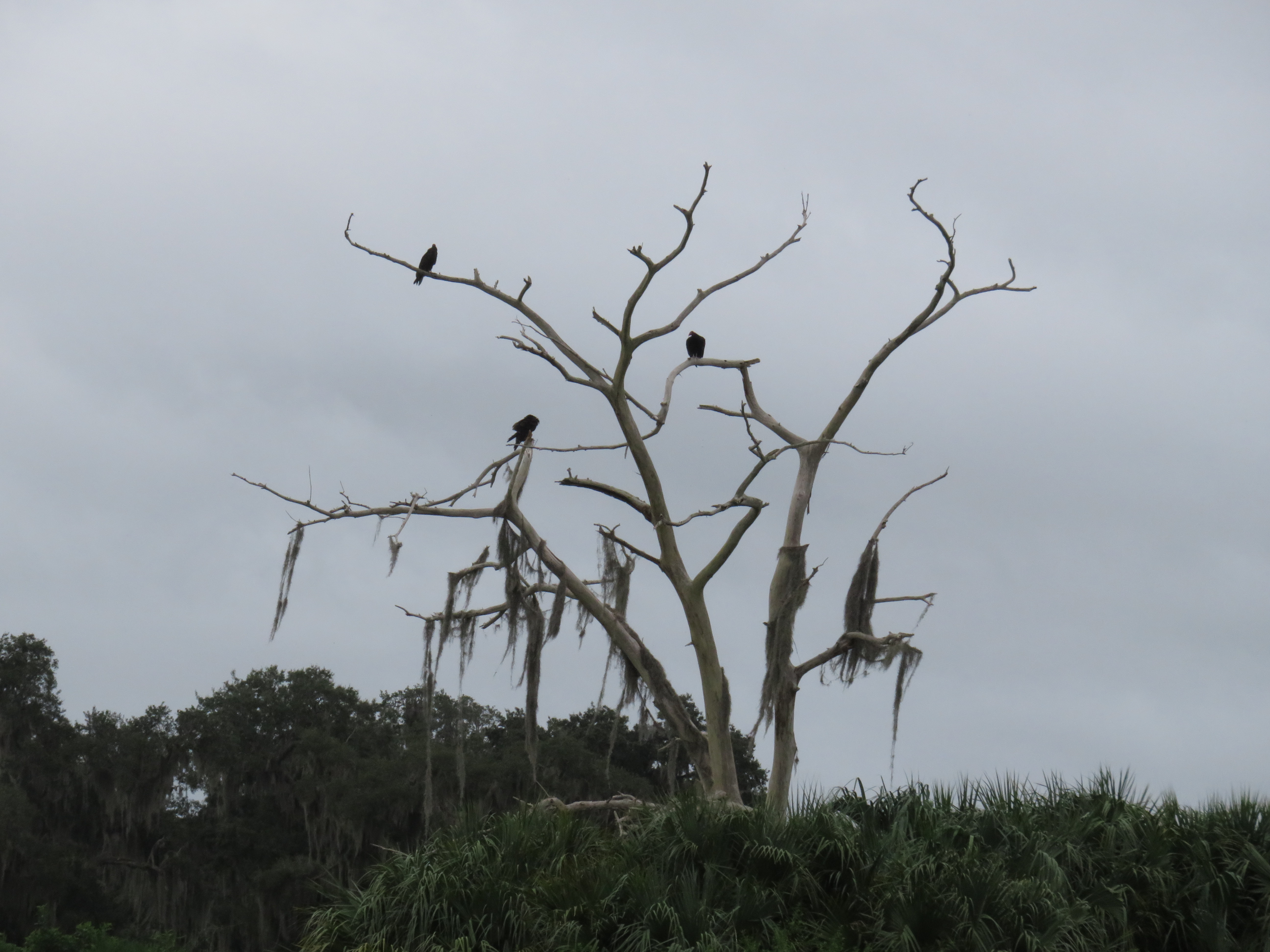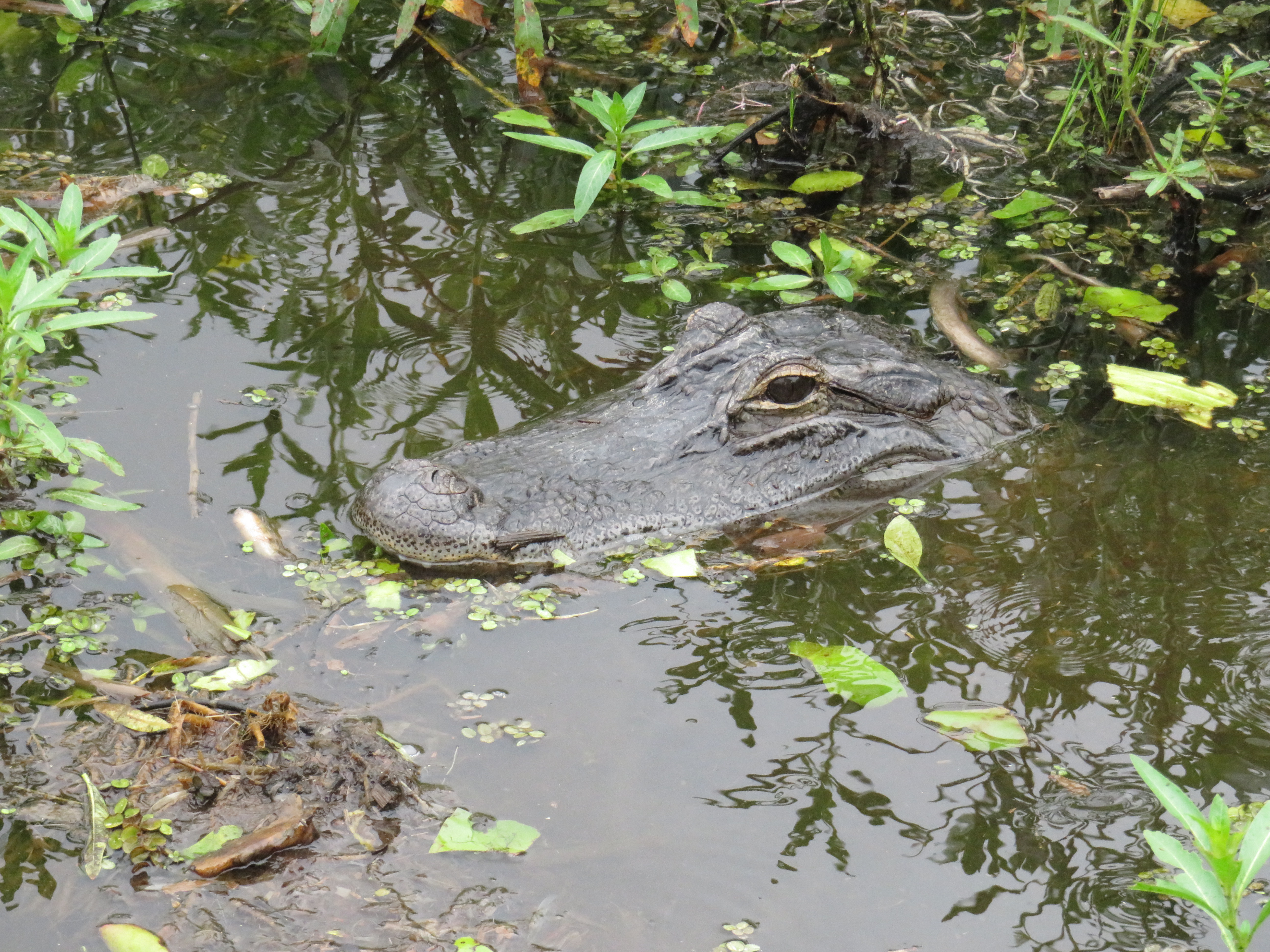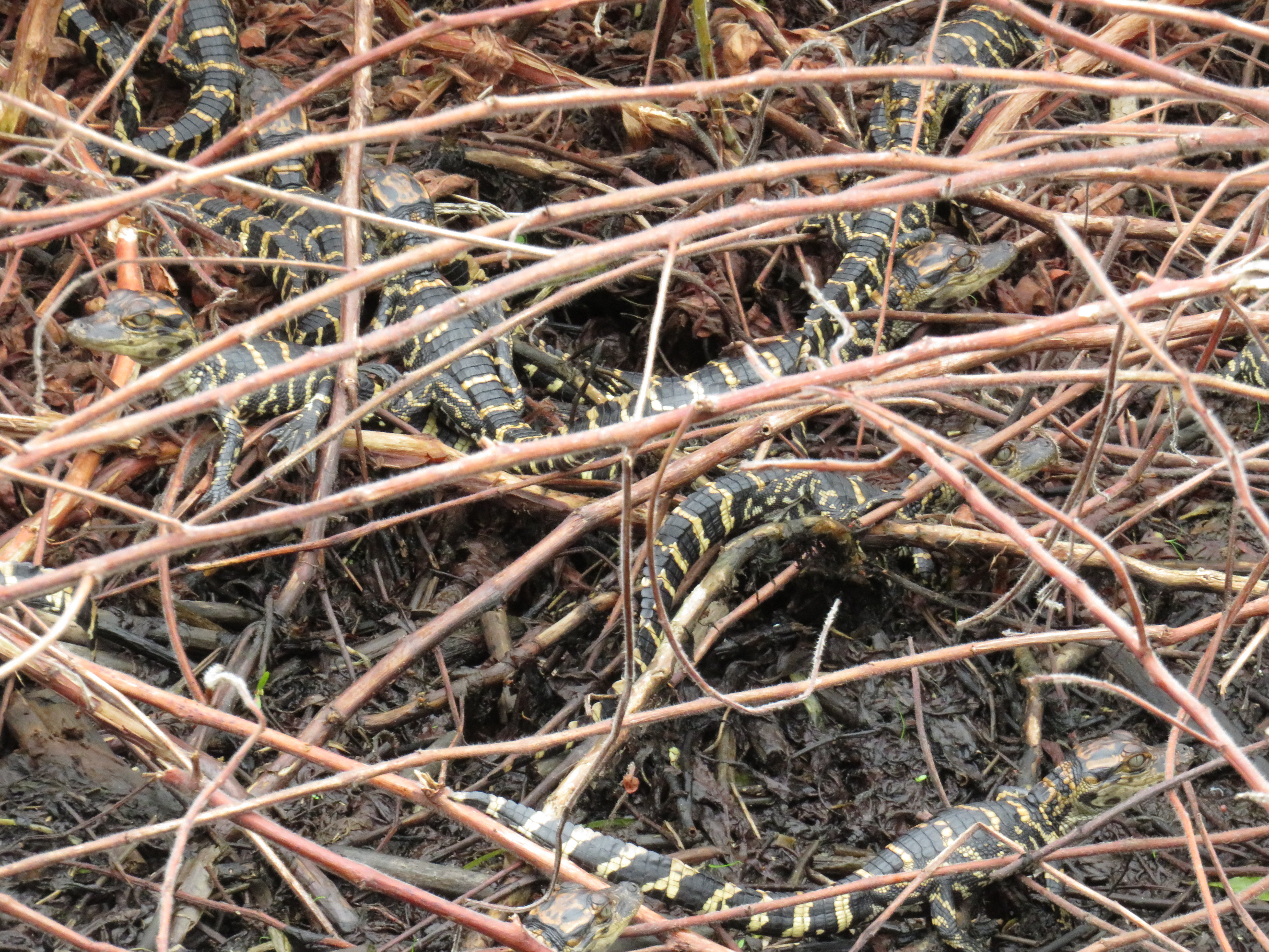 Once we arrived onto the lake, we immediately started spotting wildlife. Mainly birds, interesting birds everywhere. Vultures and egrets I believe were the first we saw. Captain Lynne was full of information about the birds, the lake and the alligators and she was funny too. We very quickly found our first alligator, it was hatchling season, so there were mama gators guarding their nests and babies in spots and Captain Lynne knew them all. We got to see several nests and the babies are hard to spot, they are so tiny, but at one nest we saw tons of them. Unfortunately, the mother was nowhere to be seen. Captain Lynne said she hadn’t seen her in days and was afraid she had been caught as hunting season had started 2 weeks earlier. It seemed really wrong to us that they would allow hunting of female alligators right during hatchling season. Now those babies will probably not survive much longer without their mother.