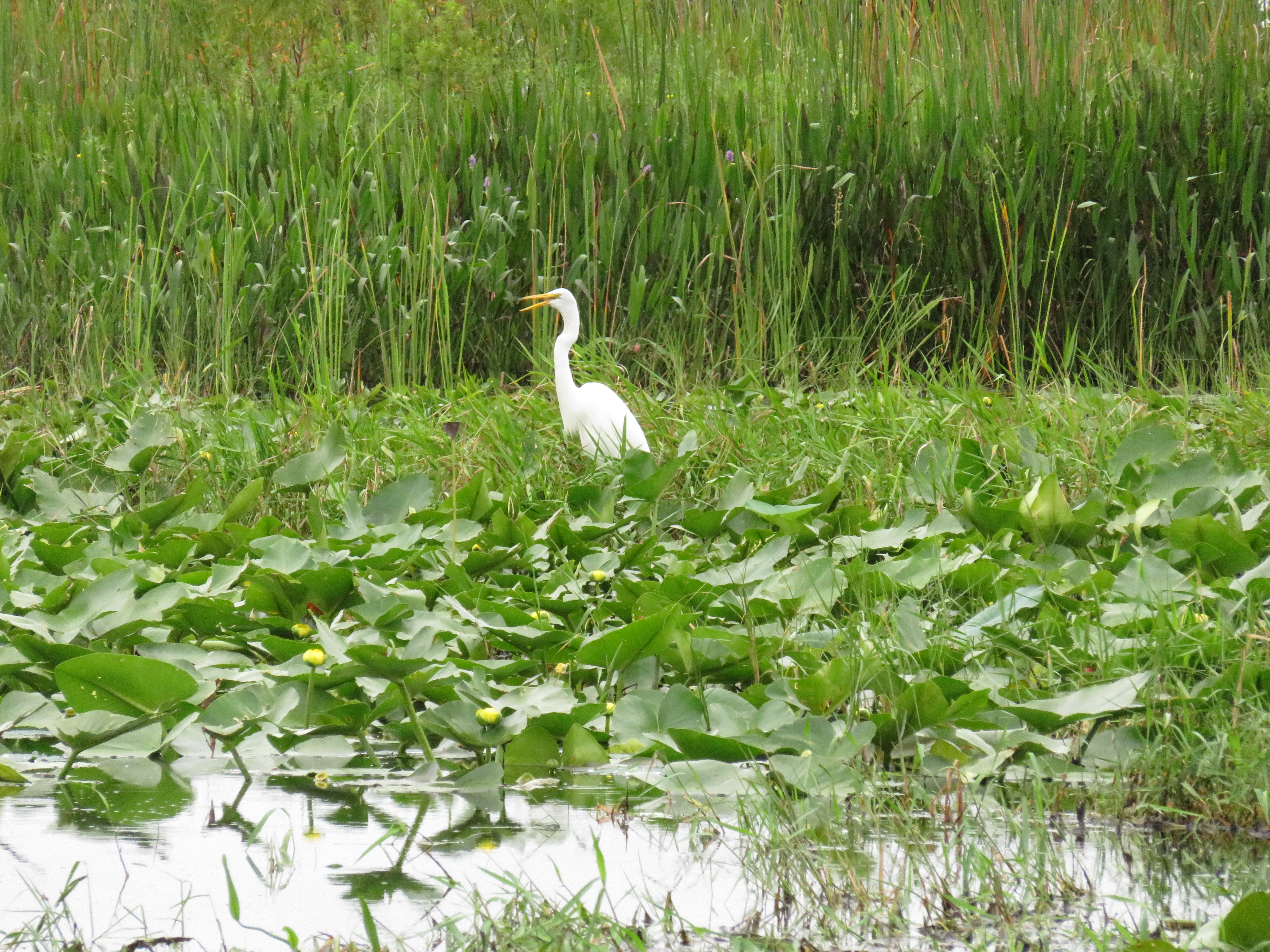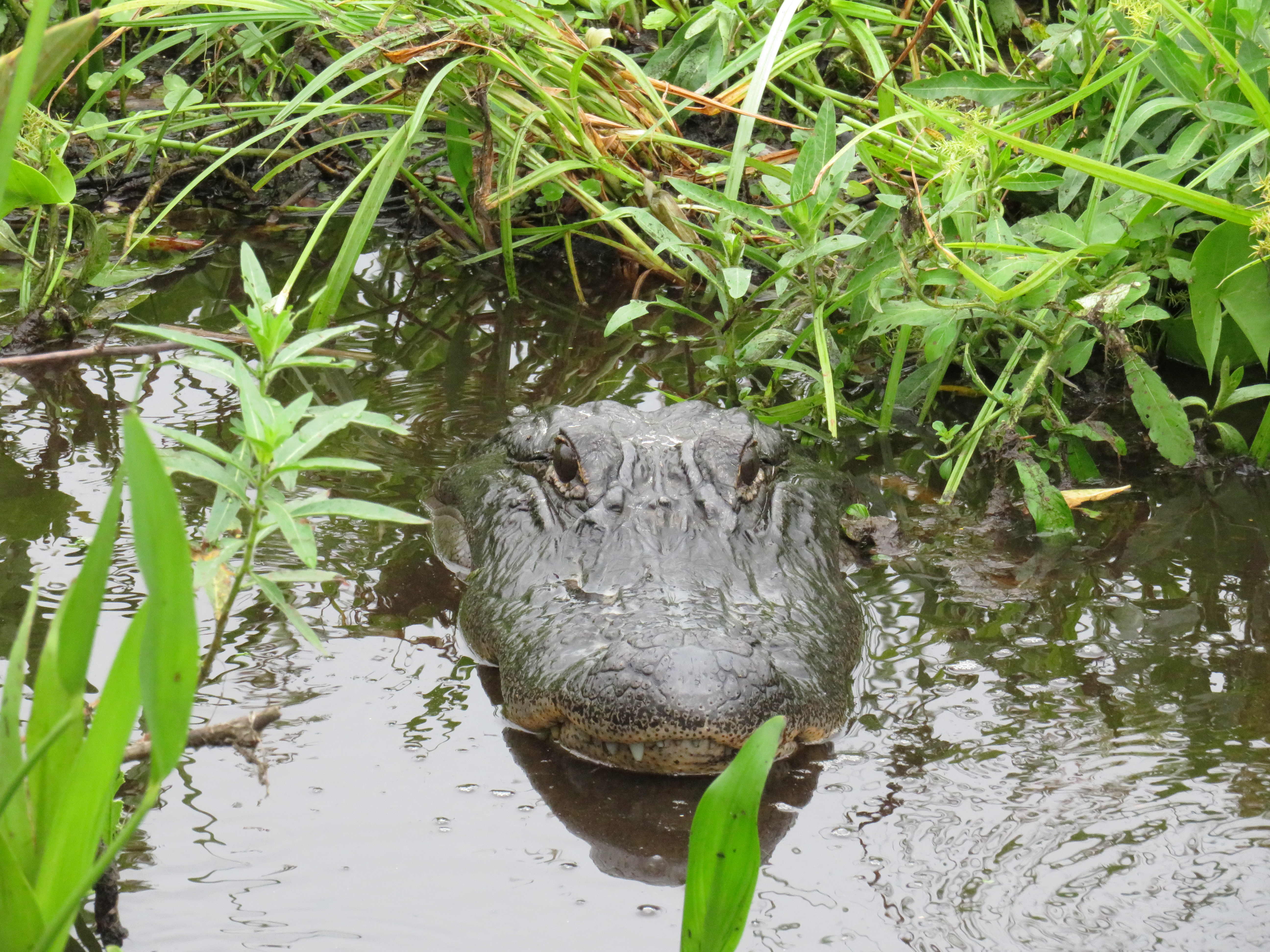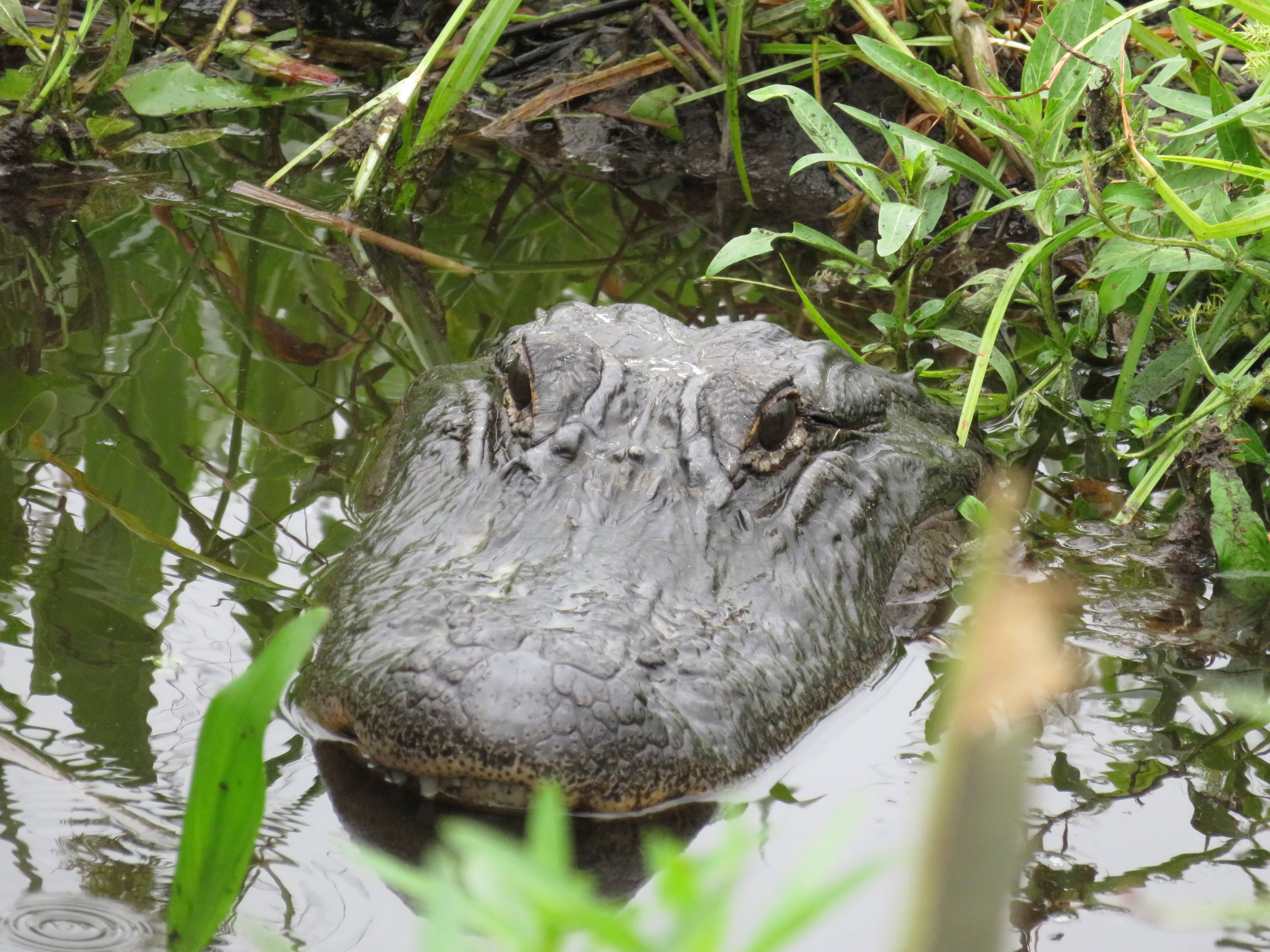 Once we arrived onto the lake, we immediately started spotting wildlife. Mainly birds, interesting birds everywhere. Vultures and egrets I believe were the first we saw. Captain Lynne was full of information about the birds, the lake and the alligators and she was funny too. We very quickly found our first alligator, it was hatchling season, so there were mama gators guarding their nests and babies in spots and Captain Lynne knew them all. We got to see several nests and the babies are hard to spot, they are so tiny, but at one nest we saw tons of them. Unfortunately, the mother was nowhere to be seen. Captain Lynne said she hadn’t seen her in days and was afraid she had been caught as hunting season had started 2 weeks earlier. It seemed really wrong to us that they would allow hunting of female alligators right during hatchling season. Now those babies will probably not survive much longer without their mother.